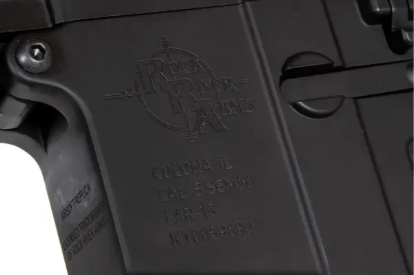 La réplica cuenta con las marcas oficiales del fabricante de armas de fuego Rock River Arms. Se trata de un fabricante estadounidense de piezas y accesorios para armas, pero sobre todo de carabinas AR-15 de alta calidad. La empresa, fundada en 1996 por los hermanos Larson, junto con Les Baer, tiene su sede en Colona, Illinois. Actualmente, RRA suministra sus rifles bajo contrato, entre otros, a la DEA, el FBI y la agencia antidrogas de los US Marshals.