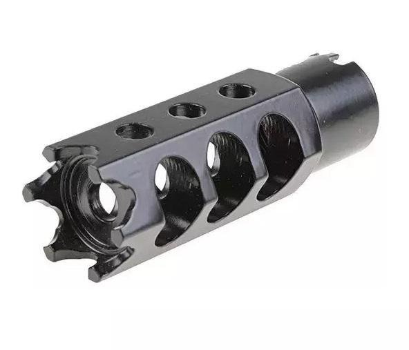 Bocacha para marcadoras de airsoft, rosca 14mm negativa, color: Negro, material: Acero.