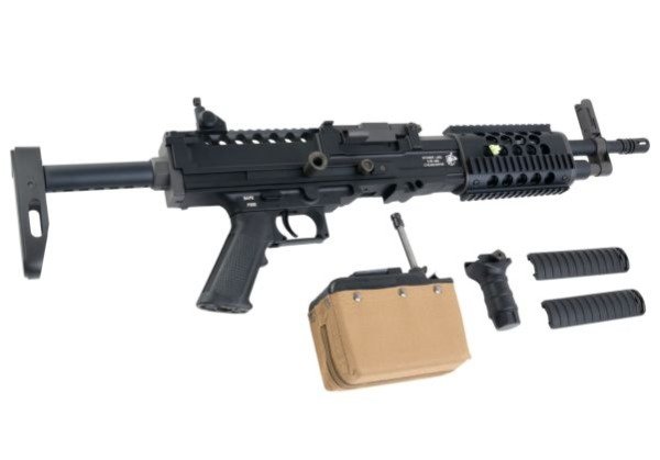 La KAC Stoner 96 es una ametralladora ligera AEG desarrollada por Classic Army. Esta plataforma de armas supresoras alimentada por correa está diseñada para ser más liviana que otros sistemas de armas automáticas de escuadrón, como el FN Minimi y el M60. Es muy considerado por las unidades especializadas y la industria de armas de fuego como un avance significativo en la tecnología de las ametralladoras ligeras. El Stoner 96 es un derivado simplificado del ARES LMG-1 de Eugene Stoner, que presenta un cañón exterior más corto, una interfaz de riel Picatinny y una culata retráctil de carabina M4 adecuada para entornos de batalla cuerpo a cuerpo (CQB). Classic Army ha replicado fielmente este sistema de arma, manteniendo el peso en 10 libras e incorporando una caja de cambios personalizada de 8 mm para impulsar el arma. También incluye un sistema de resorte guía de desmontaje rápido para ajustes convenientes del FPS para cumplir con los requisitos del campo.
