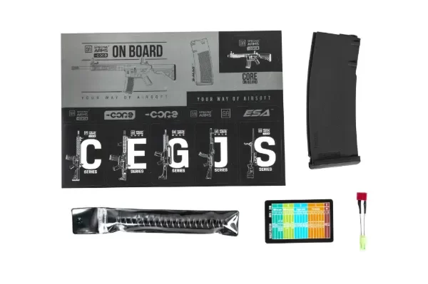 El kit incluye un cargador S-MAG hi-cap con capacidad de hasta 300 rondas. El S-MAG es un cargador de polímero exclusivo diseñado por Specna Arms. Lo que llama la atención es la textura distintiva compuesta por los logotipos de Specna Arms. El S-mag garantiza una alimentación de bolas sin problemas, incluso con un alto ROF.