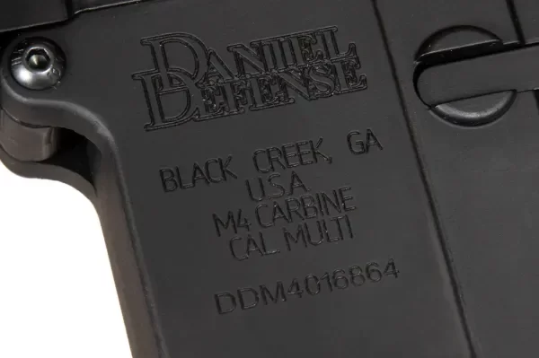Esta réplica se fabricó en colaboración con la marca estadounidense EMG Arms. Lleva la marca registrada de Daniel Defense®, fabricante de armas de fuego estadounidense que, desde 2002, se especializa en el suministro de diversas variantes del AR15 y accesorios, también bajo pedido especial del USSOCOM.